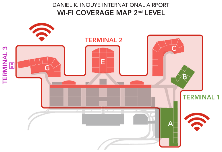 Where can I connect to Wi Fi at Daniel K. Inouye International HNL Directory 1st Floor | Map design, Monarch hotel, National .